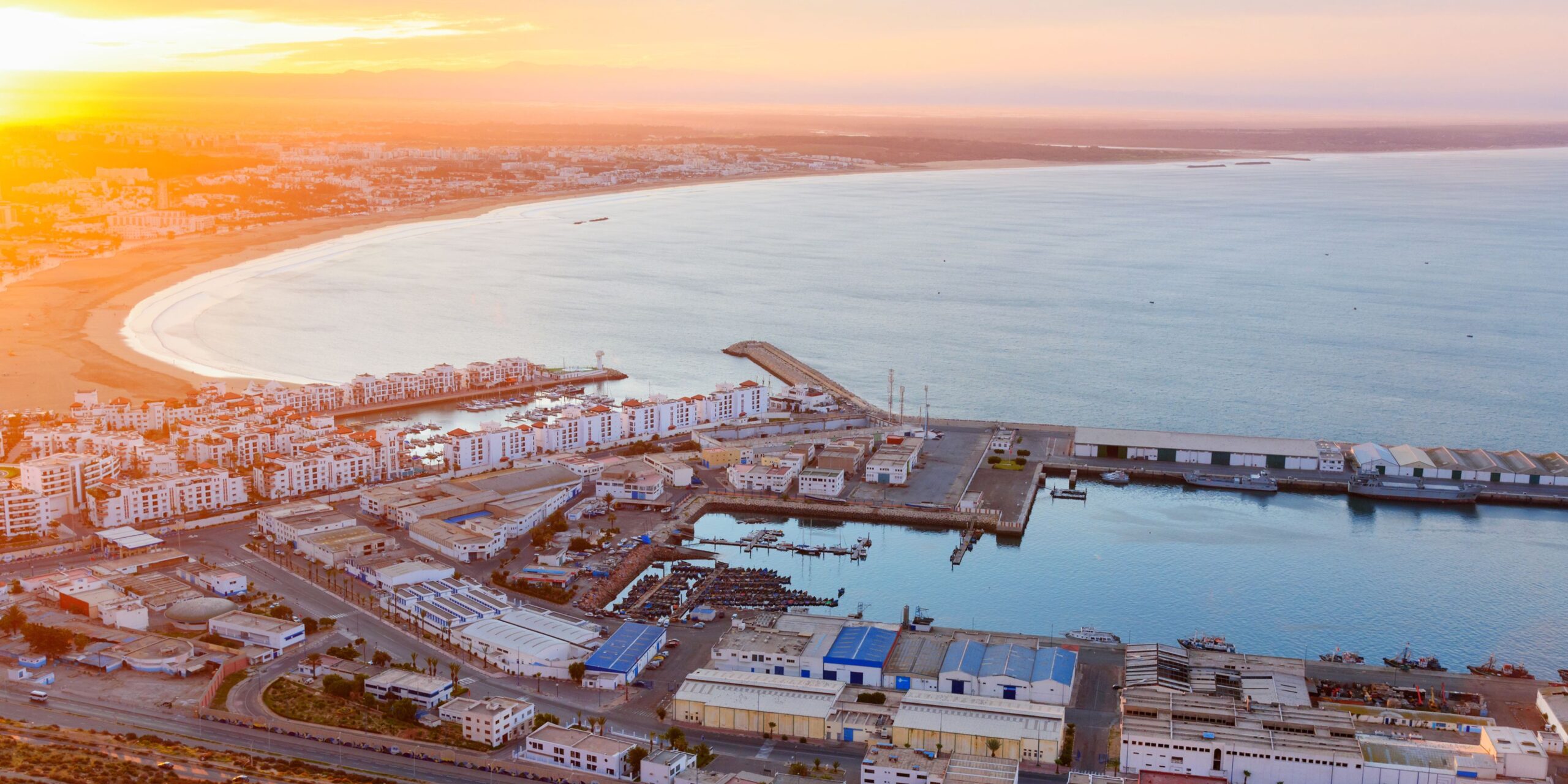 Agadir is a modern Atlantic coast city in southwest Morocco (capital of the Souss-Massa region). It was rebuilt after a 1960 earthquake and today serves as Morocco’s largest seaside resort. Its broad bay is edged by 12 kilometers of fine sand, and the city’s mild climate (around 20°C in winter) makes it a popular “winter…